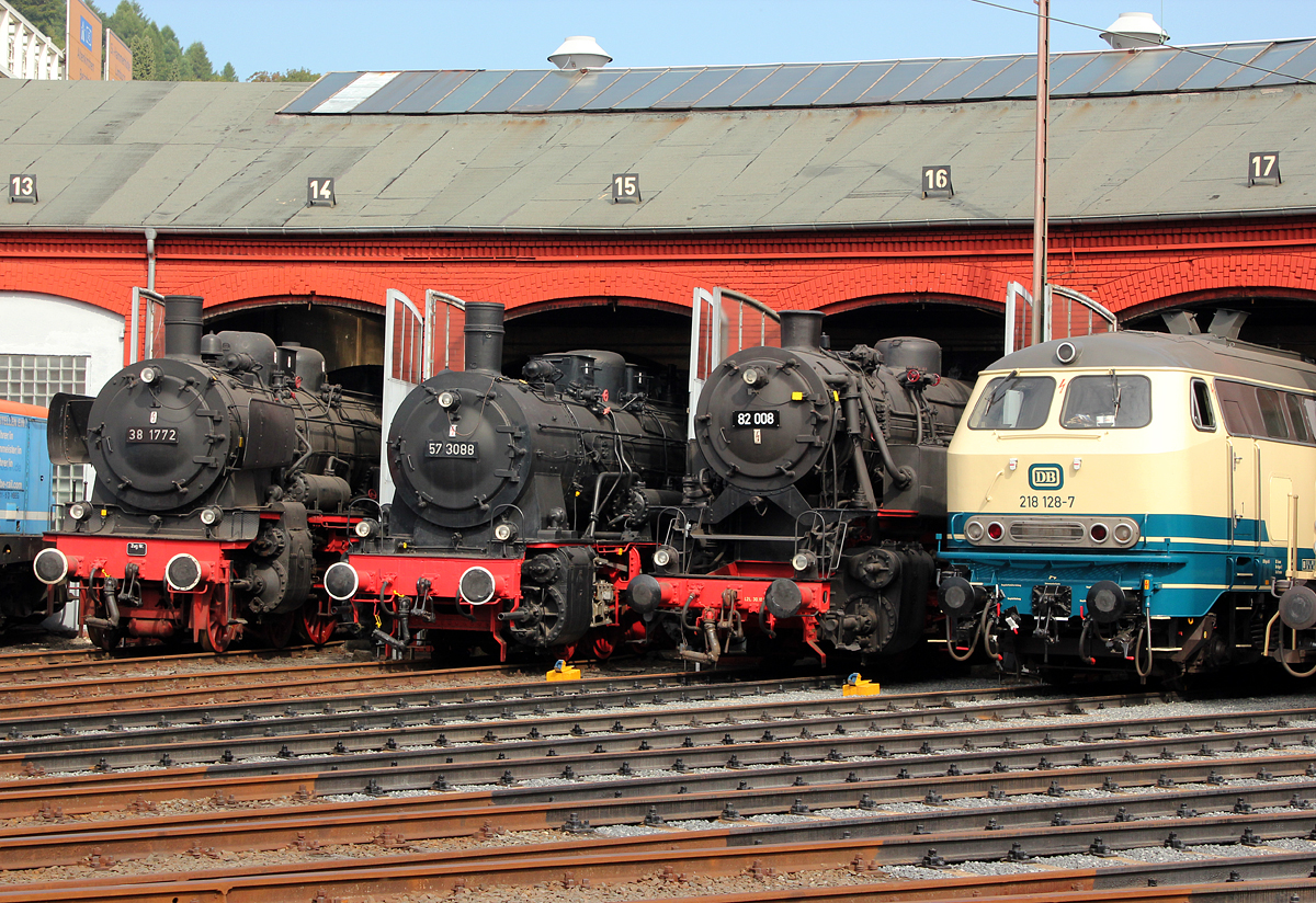 Die Bochumer 38 2267 ebenfalls mit einem 10 Wagen Sonderzug nach Giessen in Dattenberg am 28.04.2012