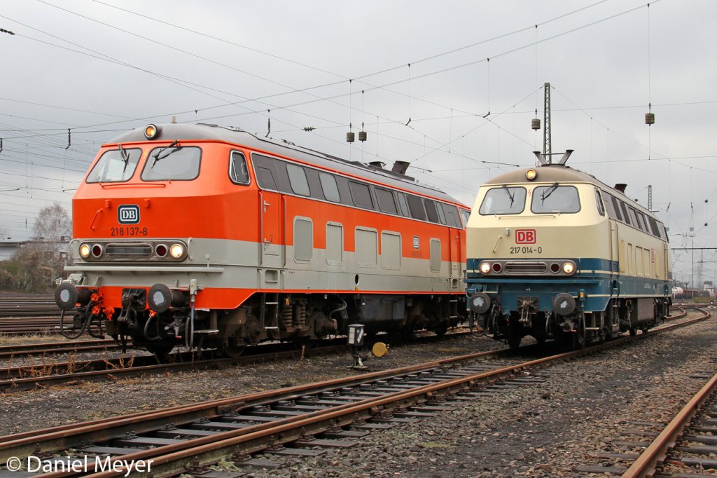 Die 218 137-8 und 217 014-0 im DB Museum Koblenz Lützel am 10,03,13