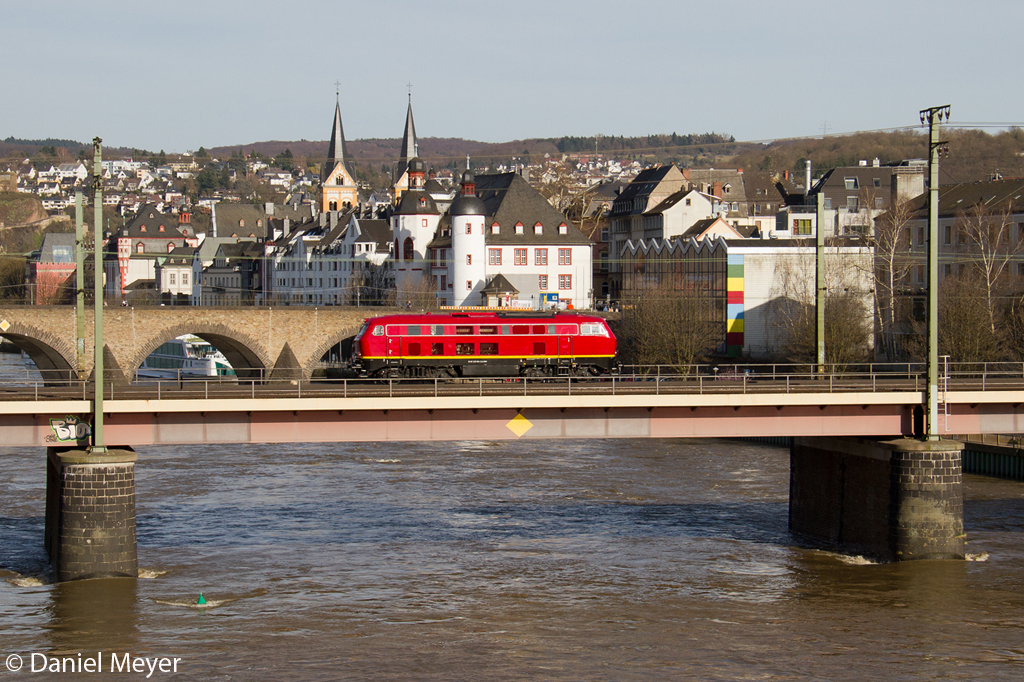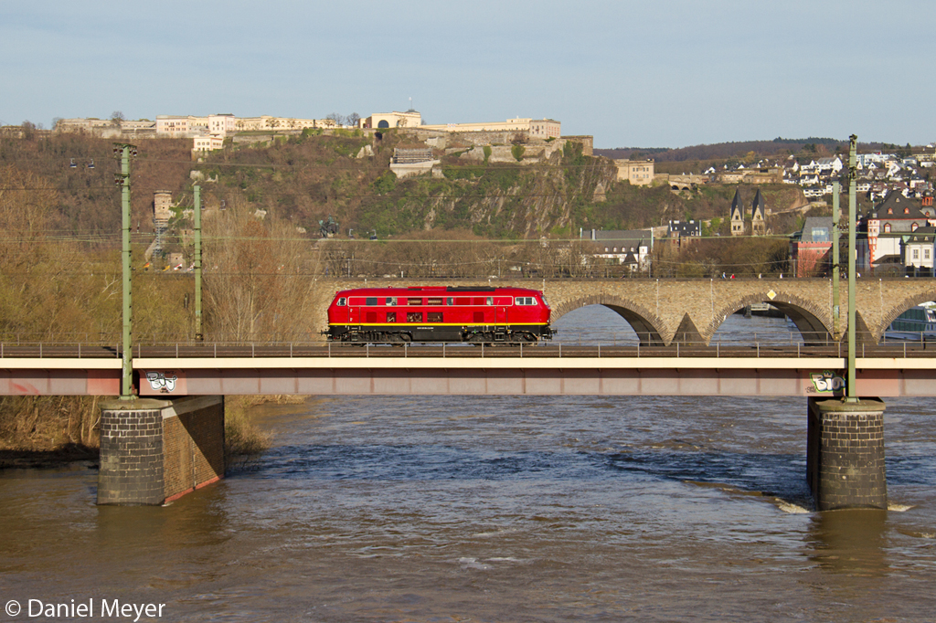 Die 225 094-2 der EBM auf der Moselbrücke in Koblenz am 14,04,13