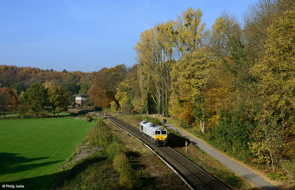 266 029-0 als T 67669 (Oberhausen-Osterfeld - Flandersbach) am 01.11.2015 bei Ratingen-Tiefenbroich.