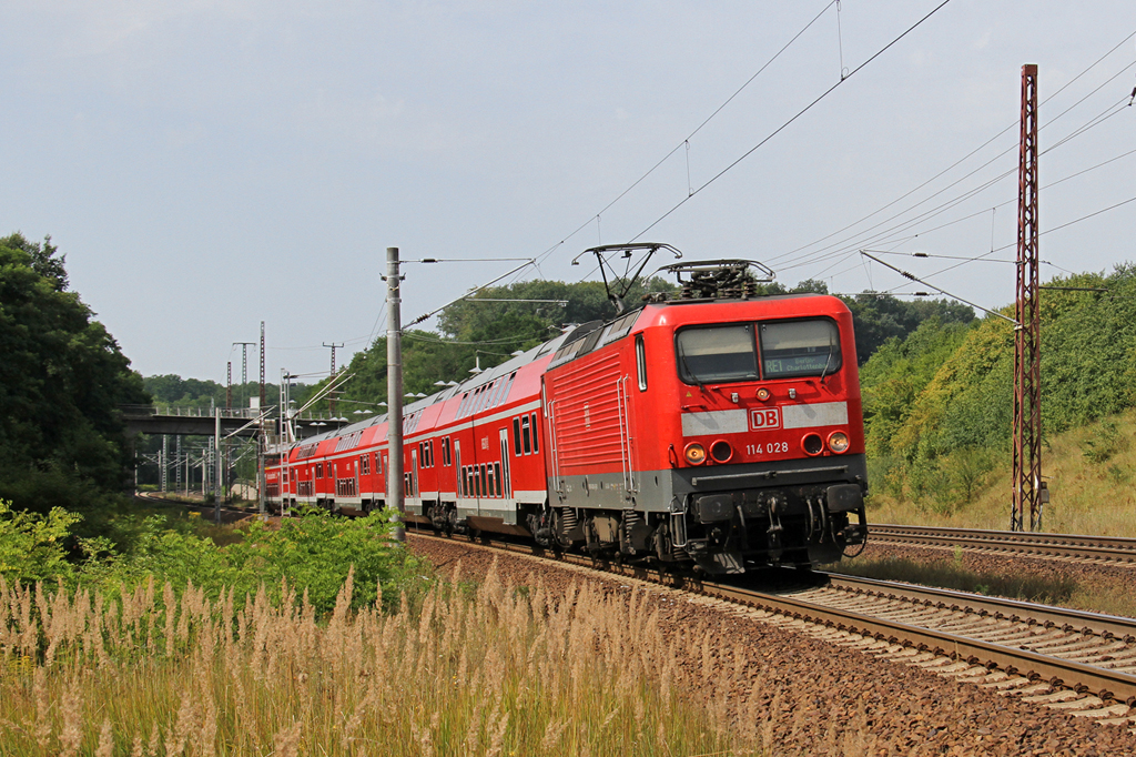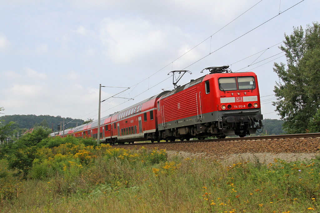 114 501-0, aufgenommen vor einem Messzug bei der Durchfahrt durch Treuchtlingen, am 30.04.11.