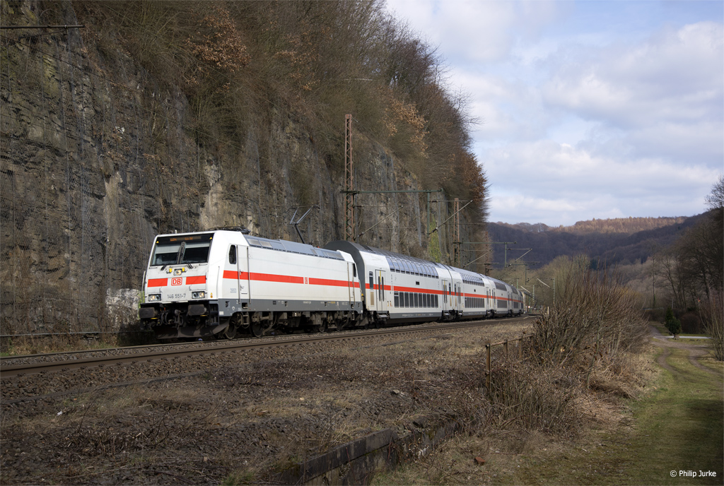 146 551-7 mit dem IC 2044 (Leipzig Hbf - Köln Hbf) am 24.03.2018 bei Ennepetal.