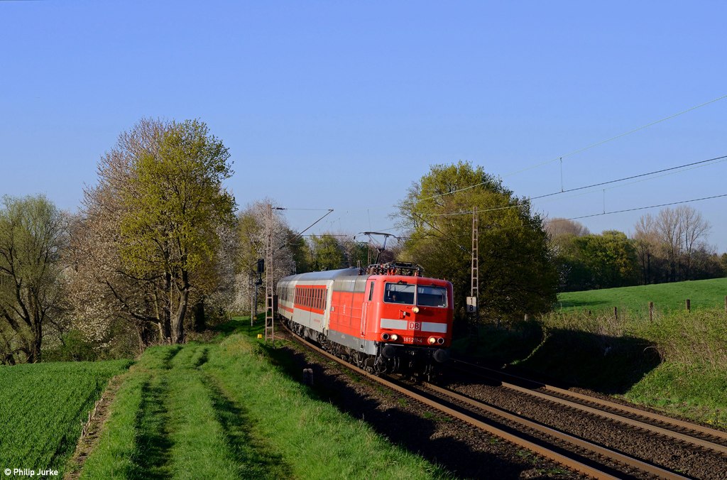 181 211-4 mit dem PbZ 2471 (Dortmund Hbf - Frankfurt(Main)Hbf) am 20.04.2016 bei Haan-Ellscheid.