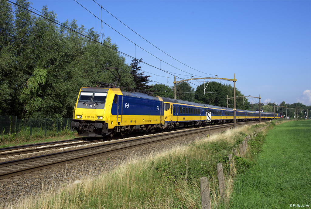 186 018-5 und 186 118-3 mit dem IC 1131 (Den Haag Centraal - Tilburg) am 06.08.2017 bei Breda.