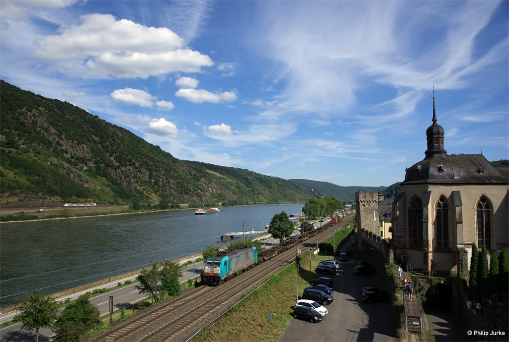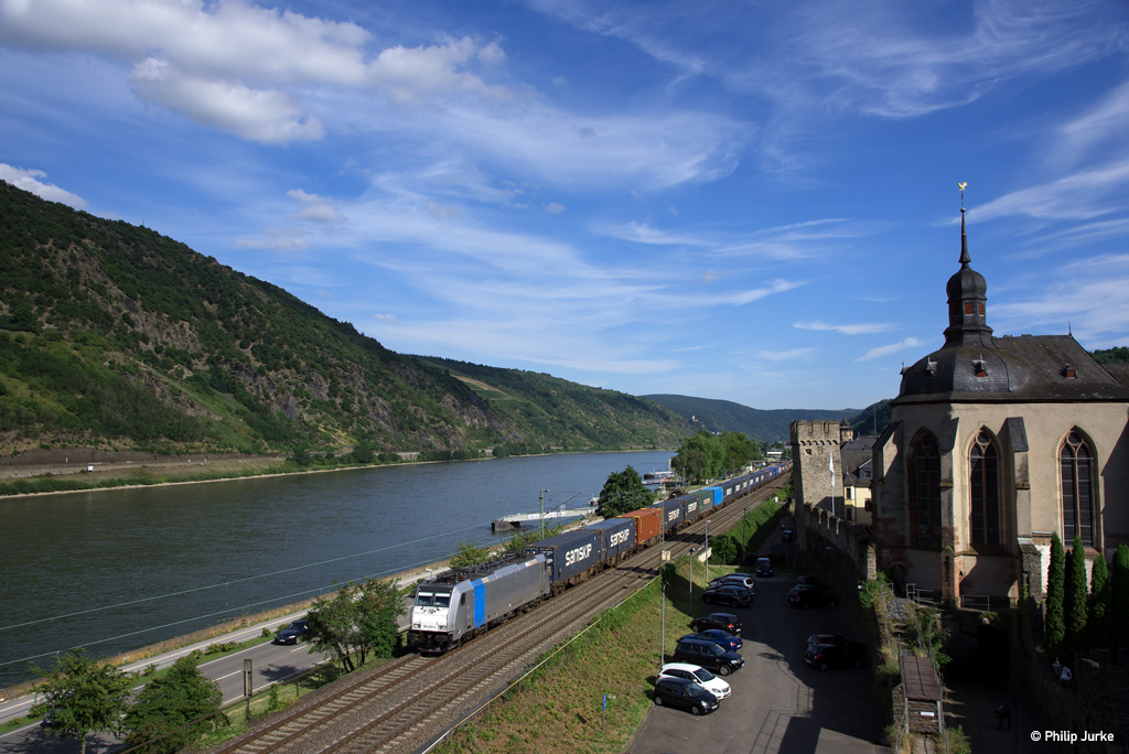 186 459-4 mit einem KV-Zug am 13.07.2017 bei Oberwesel.
