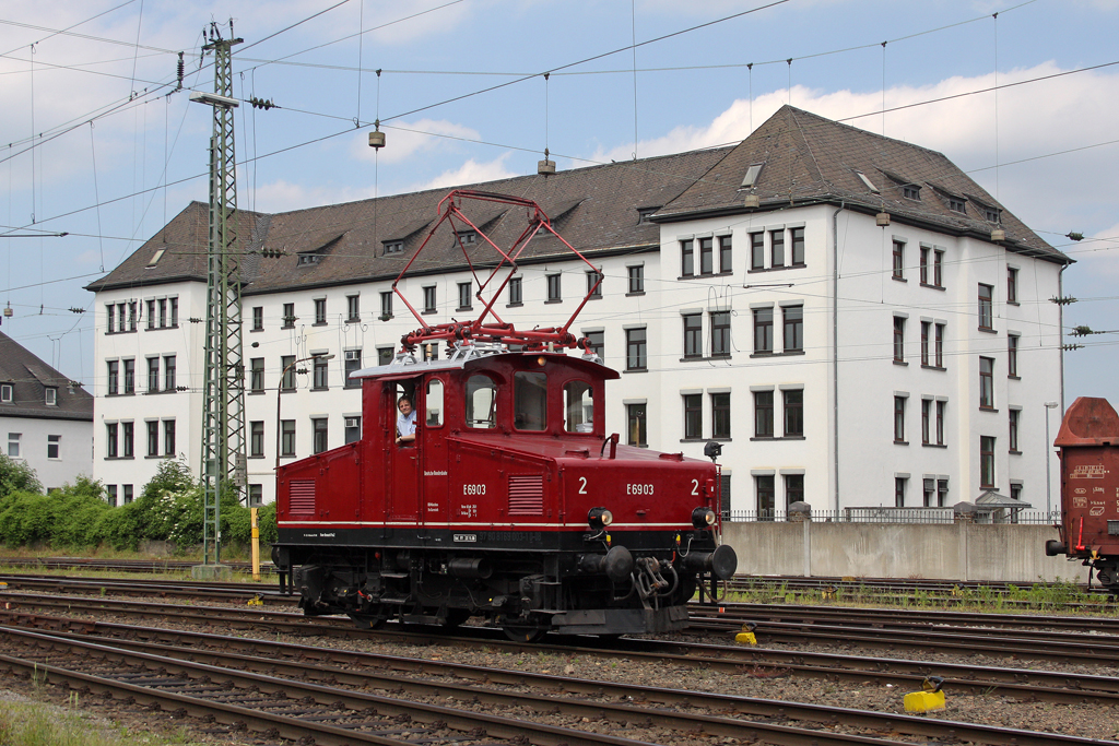 Die E69 03 in Koblenz Lützel am 09.06.2013