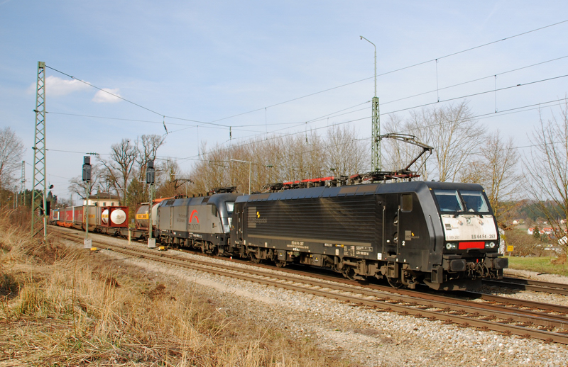 2x Bosporus Sprinter! ES 64 U2-067 + ES 64 U2-63, beides Bosporus Sprinter(!), aufgenommen am 09.02.10, bei der Durchfahrt durch Gersthofen, Strecke Augsburg-Donauwörth.