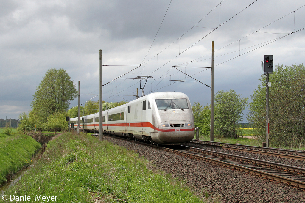 Der ICE 1 401 005 bei Quarnstedt am 12.05.2013