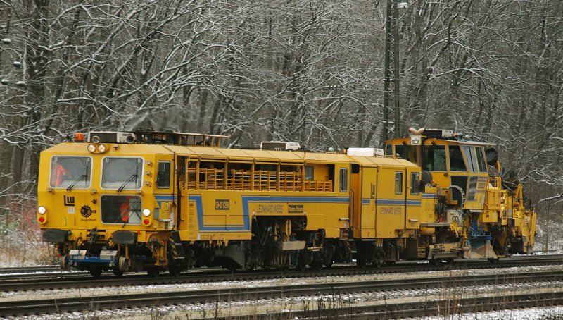 Ein Leonhard Weiss Bauzug, aufgenommen am 12.12.09, bei der Durchfahrt durch Neuoffingen, Strecke Ulm-Augsburg.