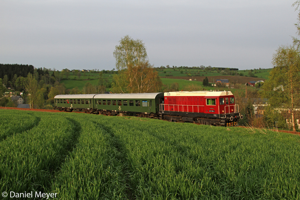 Die Railsystems 107 018-4 ( V75 018 ) mit einem Sonderzug von Annaberg-Buchholz nach Schwarzenberg (Erzg.) in Schlettau am 10.05.2013