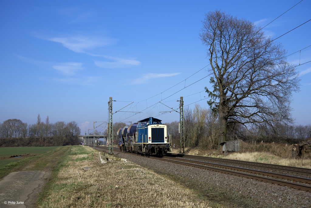 011 075-9 und 212 007-9 als Zug 407 (Bochum Hbf - Bochum-Dahlhausen) am 19.04.2015 in Essen-Eiberg.