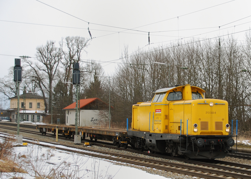 52 7596 und P8 2455 "Posen" sowie 01 1066 und die V100 2335 bei der leicht missglückten Parallelfahrt am 06.01.2013 in Gutach.