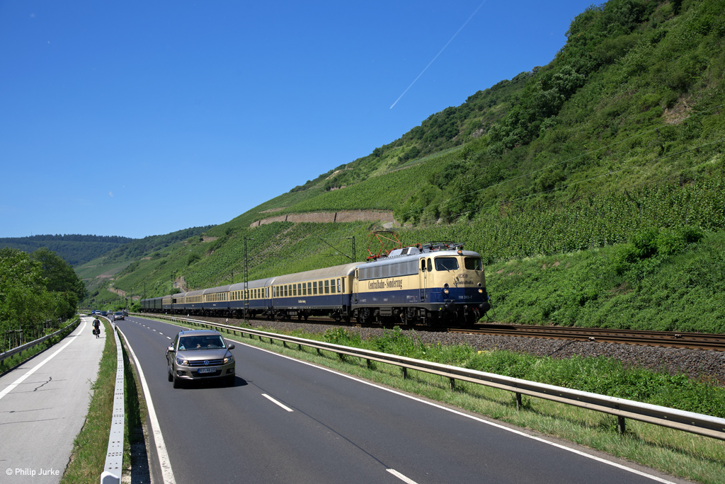 E10 1239 mit dem TEE (Koblenz-Lützel - Koblenz Hbf) am 19.06.2016 bei Bornheim.