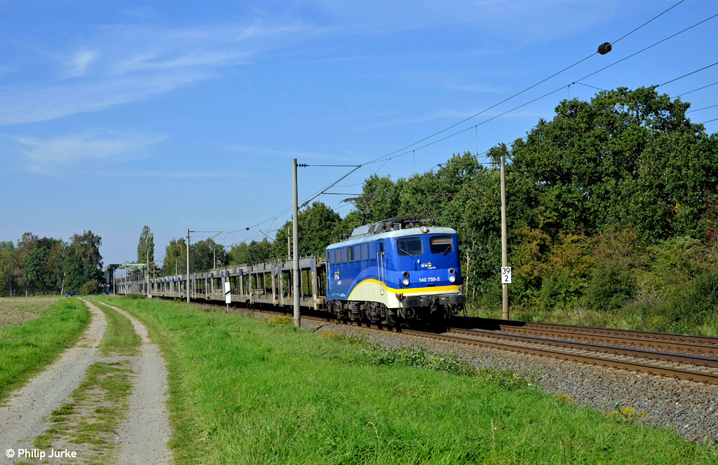 140 759-2 mit dem DGS 88959 (Emden Rbf - Falkenberg) am 03.10.2015 bei Peine.