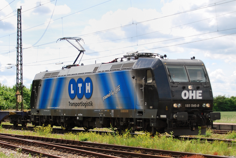 185 546-9, OHE -LTE, aufgenommen am 13.06.11, bei der Durchfahrt durch Gersthofen.